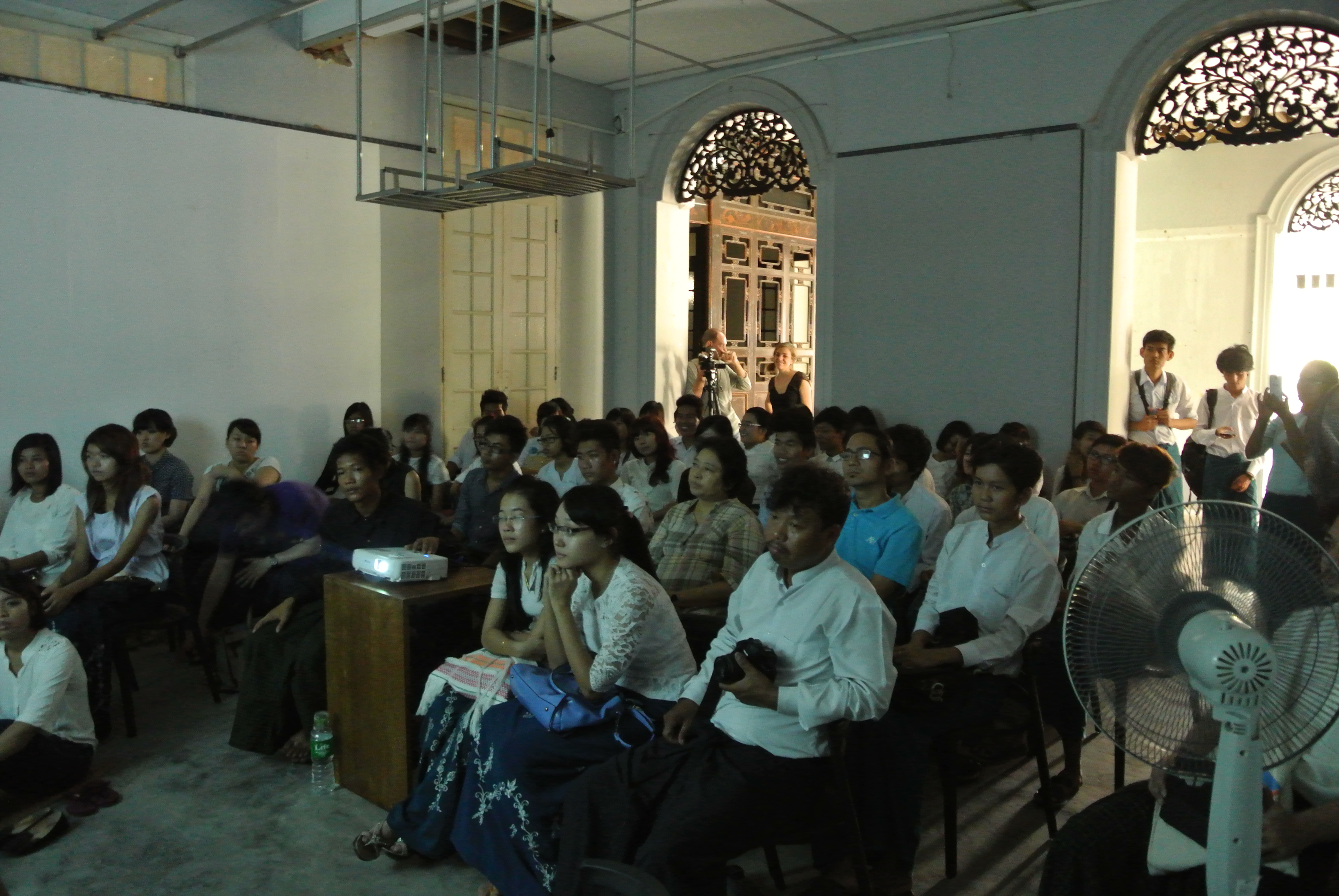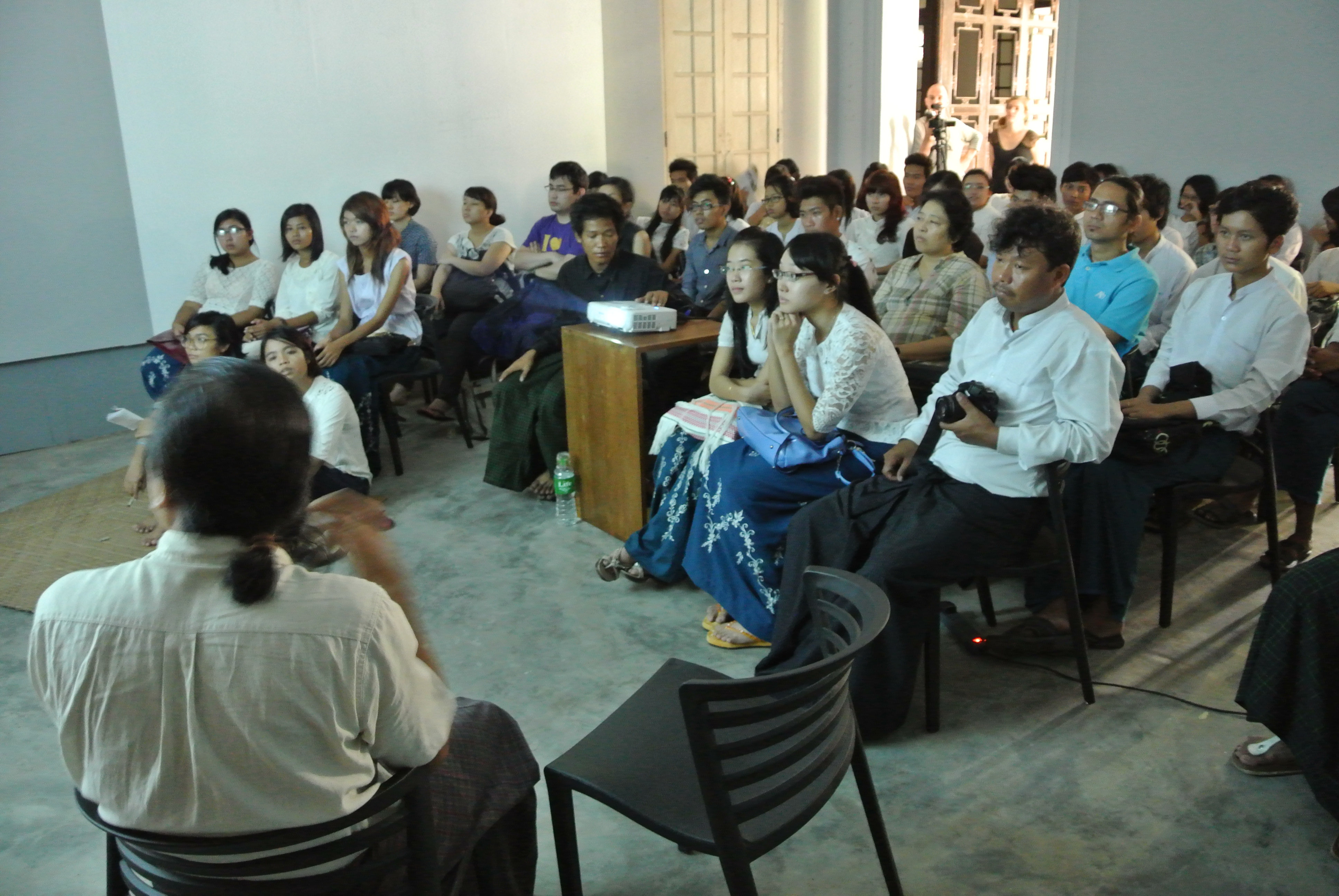 Highlights of the project included an artist talk by Po Po, the creator of the Mobile Library installation and an esteemed contemporary artist in the community. MARCA invited new students from the University of Art and Culture – Yangon to listen to Po Po speak about aesthetics, what contemporary art means, and his own fascinating practice based largely around installation and photography. It was a rare opportunity for the Myanmar students to see one of their own artists speak at length. Even our co-director, Zoncy, mentioned that in her 5 years as an artist, she has never seen Po Po speak and was happy to have the chance.